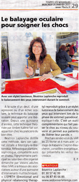Béatrice Laplanche y présentait la technique de l’Emotional and Physical Rebalancing THerapy (EPRTH™) qui permet une désensibilisation émotionnelle des traumatismes par le balayage occulaire.
